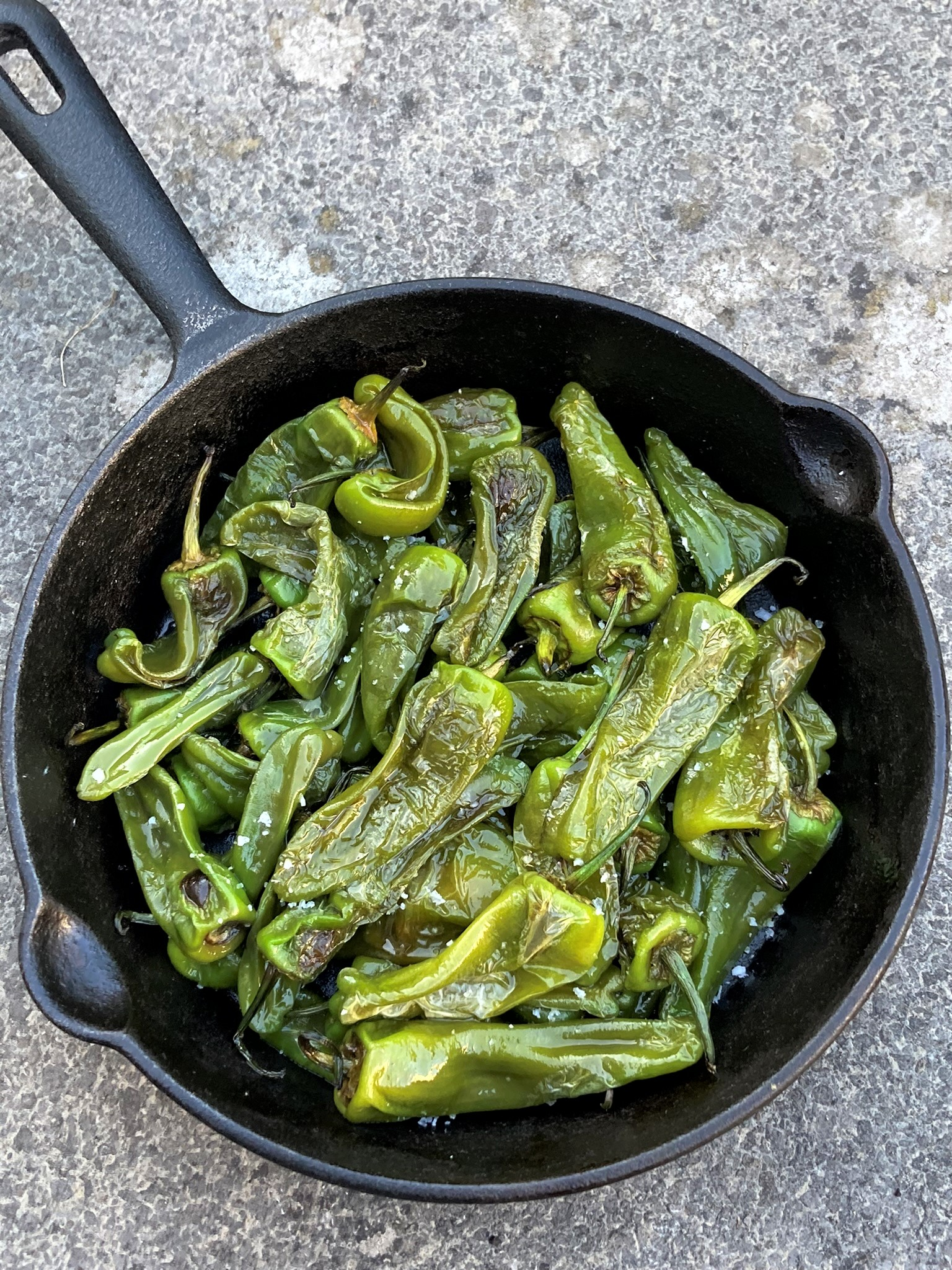 Piments de Padron (pimientos de padron) sautés à l’huile d’olive et fleur de sel