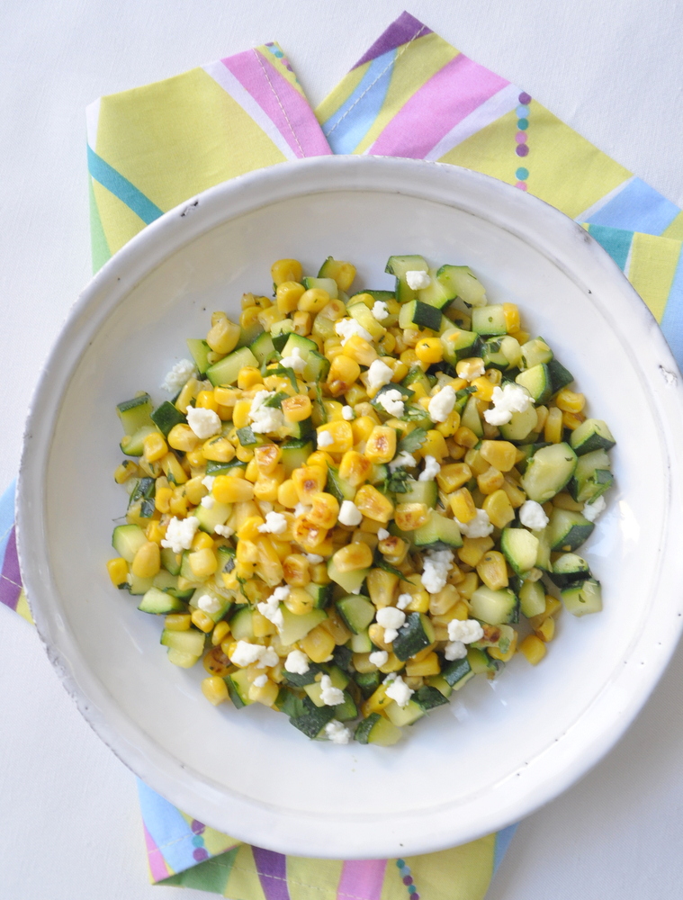 Poêlée de maïs doux aux courgettes, féta et herbes fraiches