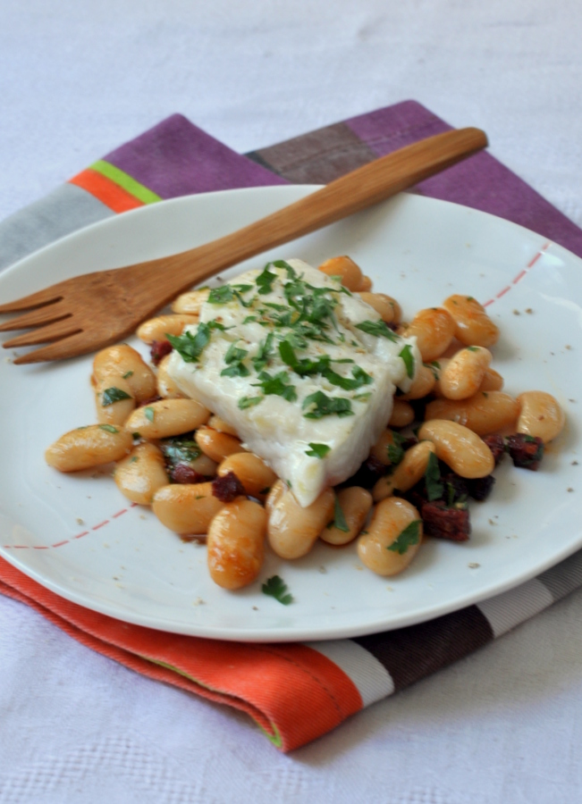 Filet de merlu sur haricots tarbais au chorizo