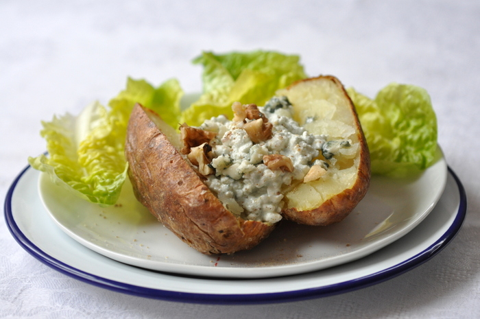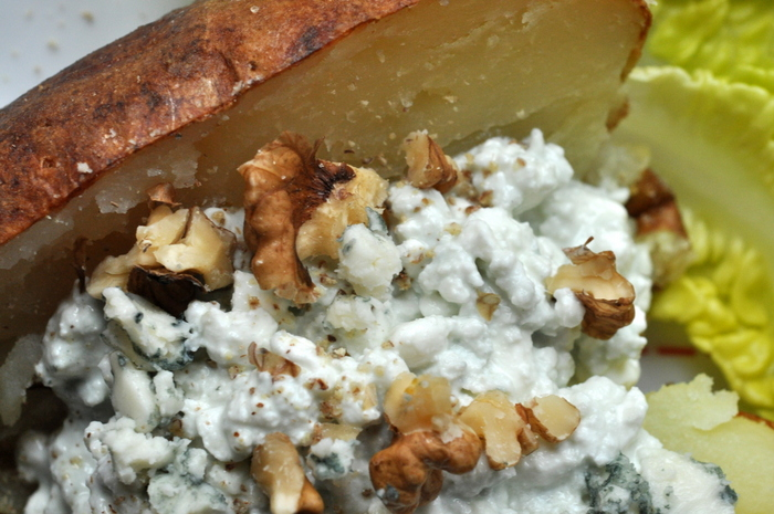 Pomme de terre au four, cottage cheese, roquefort et noix