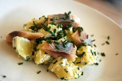 Pommes de terre à la crème et aux harengs fumés.