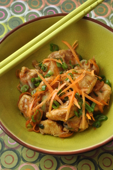 Poulet à l’ail, gingembre et oignons nouveaux