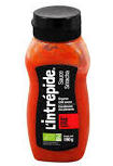 Sauce sriracha bioJ'aime beaucoup la version bio et fabriquée en France avec des piments marocains « L'Intrépide ». C'est l'œuvre d'une petite entreprise « La Marche Avant » basée à Forcalquier. Par rapport à la version « coq rouge », elle a plus de texture, elle est un peu moins sucrée, elle a plus de longueur en bouche et elle a côté plus fumé que j'aime beaucoup. Cette sauce bio ne contient ni pesticides, ni conservateurs, ni additifs ou autres épaississants.