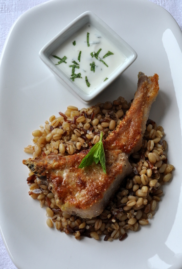 Côtelettes d’agneau au parmesan, sauce yaourt à la menthe