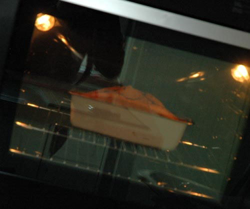 Ayant, depuis la fin des travaux, quasiment installé mon bureau dans la cuisine, j’ai même pu admirer le gâteau en train de cuire dans le four notant au passage que les fours modernes permettent de voir à l’intérieur sans avoir besoin d’ouvrir la porte du four comme j’avais la manie de faire avec l’ancien, au grand désespoir de David.