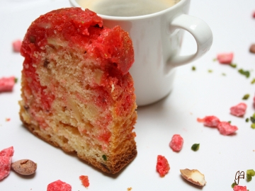 Le cake aux pralines roses, sur le blog « chocolat  et cætera »