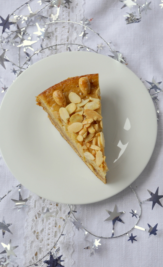Badigeonnez-le avec la confiture d’abricots, disposez les amandes entières sur le pourtour puis les amandes effilées sur la surface.