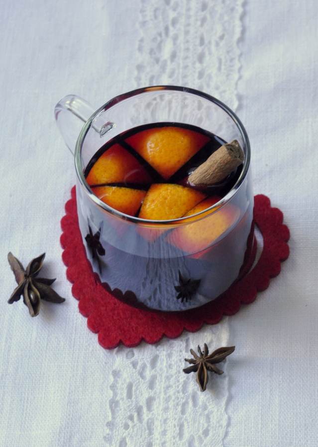 A la fin du programme, servez le vin chaud avec les morceaux d’orange et un peu de sucre.