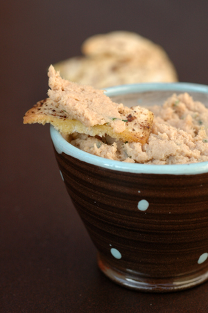 Ces rillettes du placard (un peu chic tout de même le placard) sont très parfumées et encore meilleures après une nuit au frais. Je les ai servies pour un apéritif dans des mini croustades que j’achète chez Ikéa, comme dans cette recette. Le reste s’est retrouvé le lendemain soir dans un petit bol avec des faux crackers de pain pita, d’après une idée d’Estérelle dans un article d’Elle.