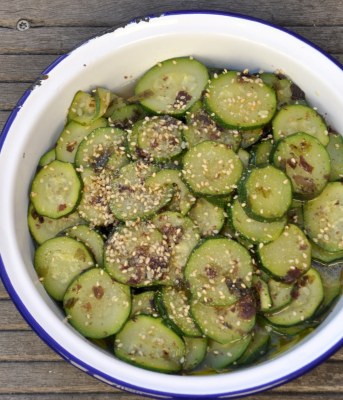 Salade de courgettes aux algues et graines de sésame