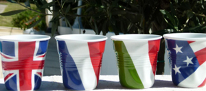 Depuis environ deux ans, c’est Révol qui fabrique (édite) sa vaisselle et c’est encore mieux. J’ai craqué sur les tasses froissées avec les drapeaux de la Grande-Bretagne, des Etats–Unis et du pays Basque ainsi que pour celles avec les « shoppeuses ».
