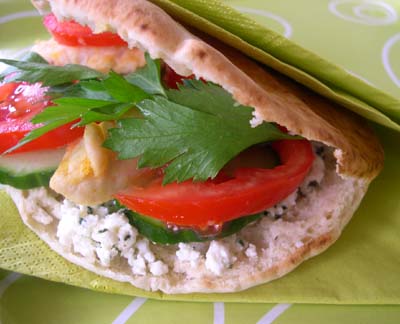 Déposez la feta  à l’intérieur du pain pita.