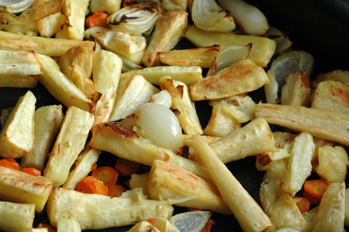2011 débute bien avec cette soupe de panaïs au goût unique comme tu le soulignes. Faire rôtir ou revenir les légumes pour une soupe ou un velouté donne un goût très agréable. Par contre, les légumes sont tellement appétissants à la sortie du four qu’il doit être dur de tout mixer. Bien amicalement.