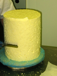 Lorsque le fromage a la bonne consistance, les moules sont retirés. A ce stade, le fromage est encore blanc et l’extérieur est très souple, un peu comme du cottage cheese. Les fromages sont lissés, afin d’empêcher l’air de rentrer. Il faut alors attendre encore 4 semaines, tout en retournant les cylindres régulièrement. C’est dans cette période que la croute se forme sur les fromages de Stilton.