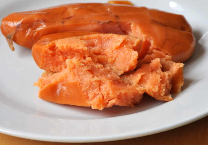 Retirez la peau de la poche puis grattez avec une petite cuillère pour récupérer l’intérieur de la poche, soit les oeufs.