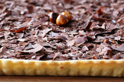 Tarte chocolat au lait noisetets caramelisees vue 1