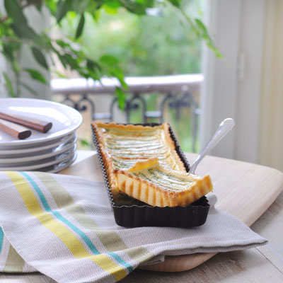 Cette recette de tarte/quiche aux asperges, extraite de mon dernier livre « Légumes et Tutti Frutti », me rappelle le tout début de l’été dernier. A peine cette tarte sortie du four, je l’avais apportée chez une amie pour le déjeuner. Nous l’avions particulièrement apprécié, dans le jardin, sous le soleil et je compte bien la refaire.