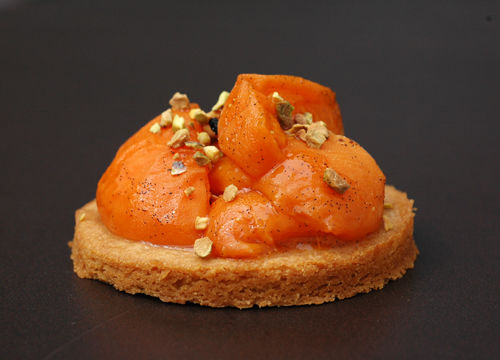 Tartelettes sablées praliné et abricots rôtis à la vanille.