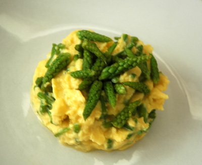 Œufs brouillés aux asperges des bois.