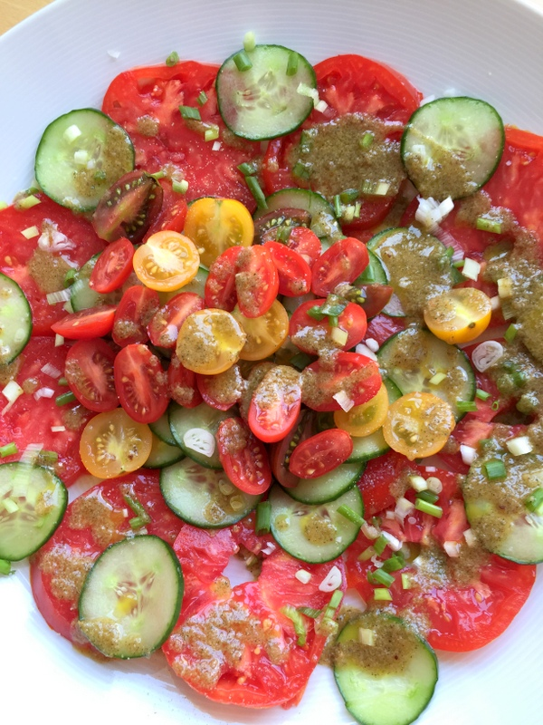 Nous l'avons servie avec une salade de tomates et concombre.
